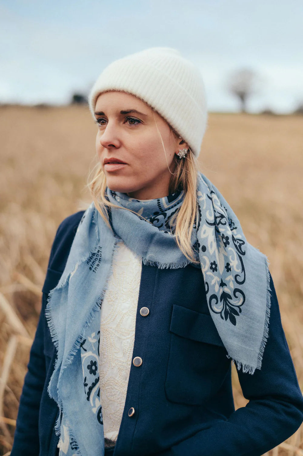 Fall for this beautiful wool and cashmere scarf with exquisite softness. A delight to wear, its perfect square shape makes it your everyday ally, keeping you warm in a cocoon of softness. Make it yours, it will never leave your side!