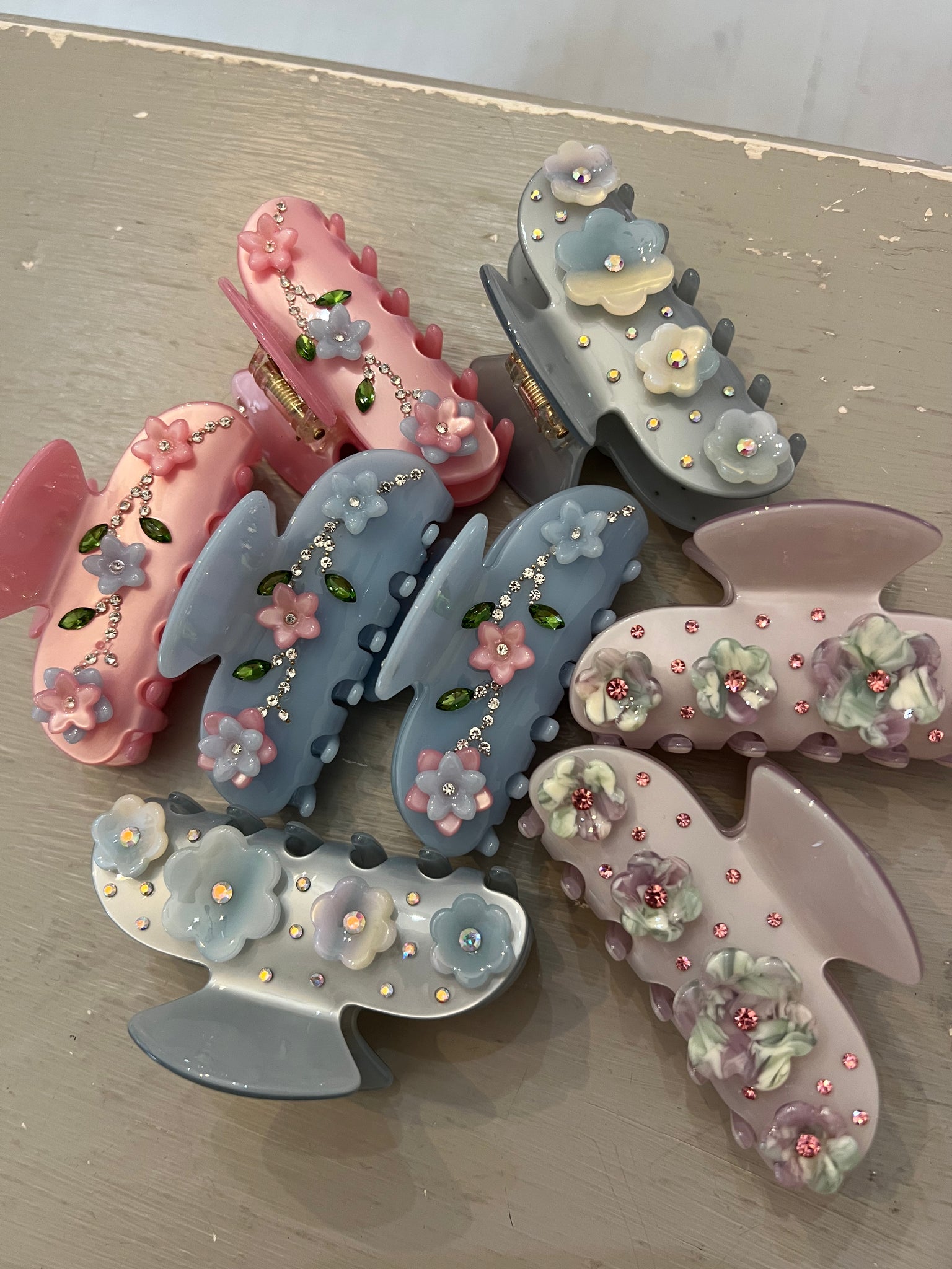 Flower Rhinestone Claw Clip