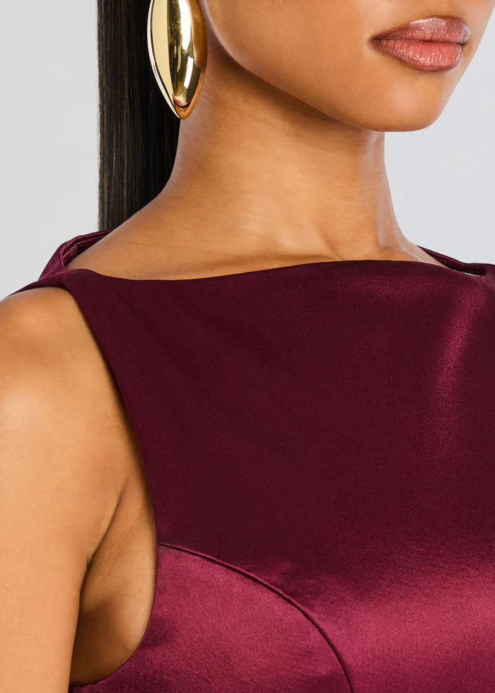 Indulge in luxury with our Livie Dress. Crafted from a rich satin fabric, this mini dress boasts a flattering fit and flare silhouette, making it the perfect choice for any holiday occasion. Shown here in Port.